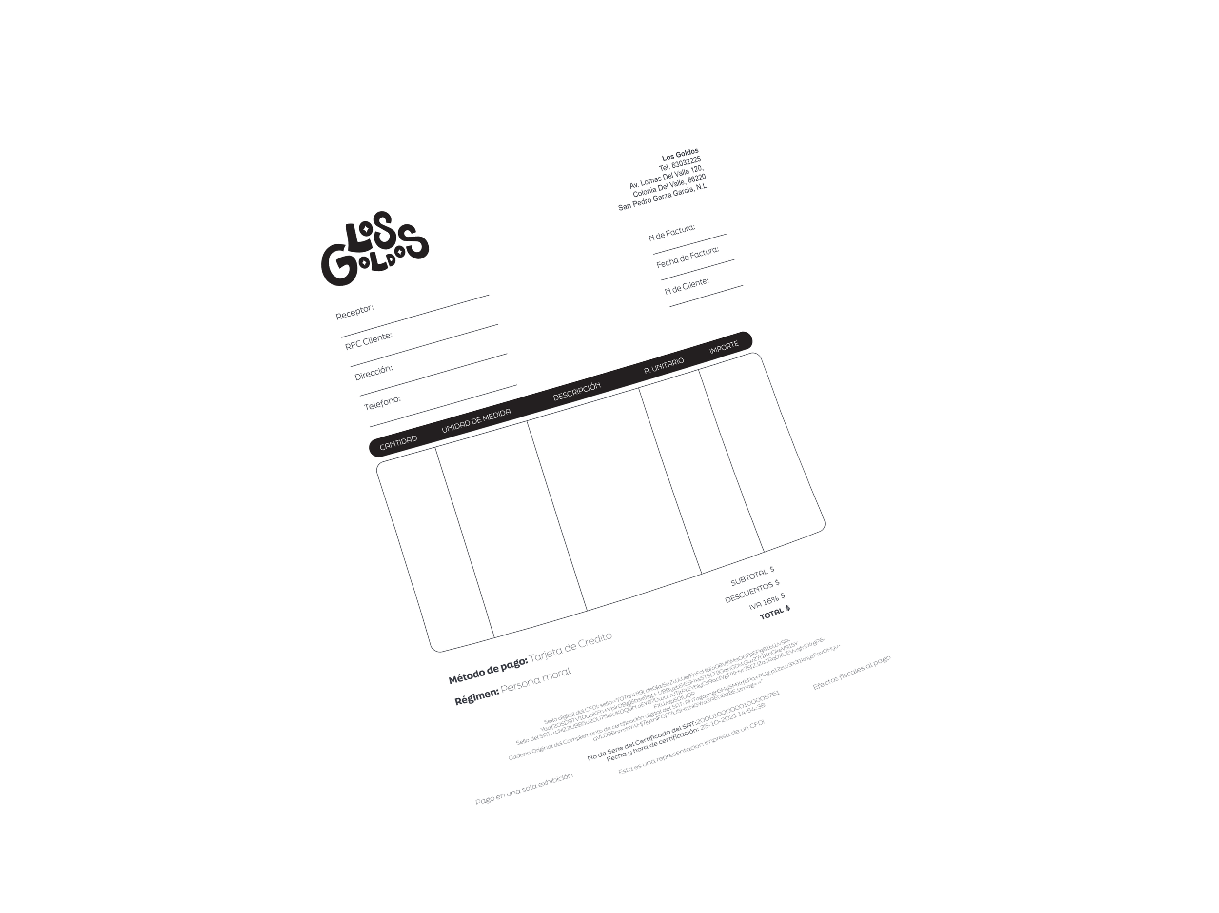 This branding was created for a Taco and Chicken restaurant called Los Goldos. In Monterrey taco restaurants open by the second and the creative approach here was to design something that differenciates Los Goldos from the competitors. The final solution came to life always staying focused in the owners and the meaning behind the business to make it feel special and authentic.